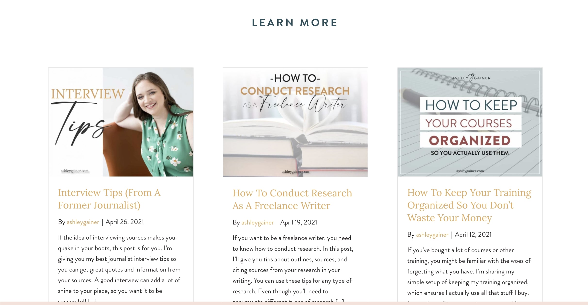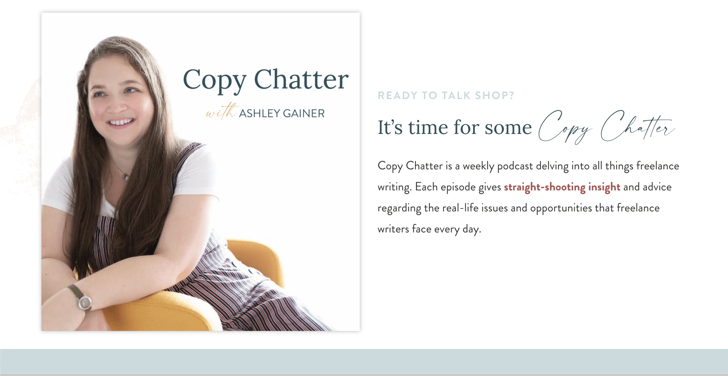 Ashley Gainer’s site offers courses and free resources for writers to help them learn how to create engaging copy.