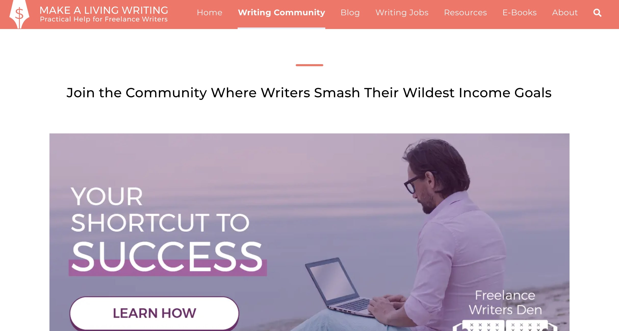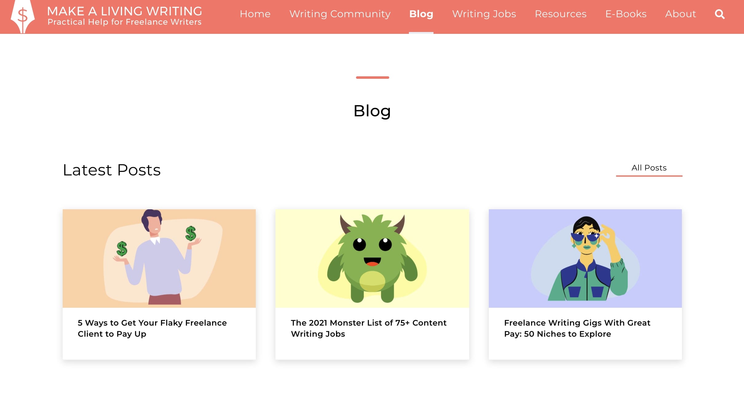Make a Living Writing offers 1,200+ free posts about how to break in, move up, and earn a full-time living from freelance writing.